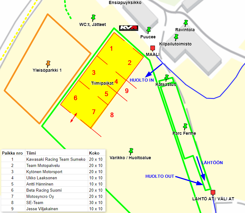 Varikko/Huoltoalueella on moottoripyörien alla oltava huoltomatto. Sen käyttöä valvotaan.